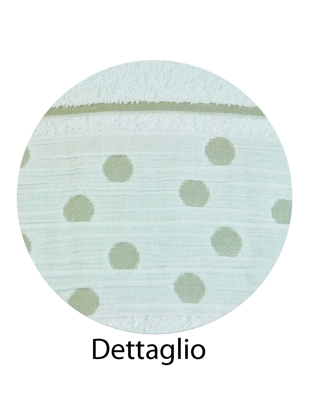 toallas 100% algodón del buen peso clásico creado por el proceso esponja ricciolini y adornada por una banda de tejido plisado irregular en el que están bordadas lunares en tono con la esponja.