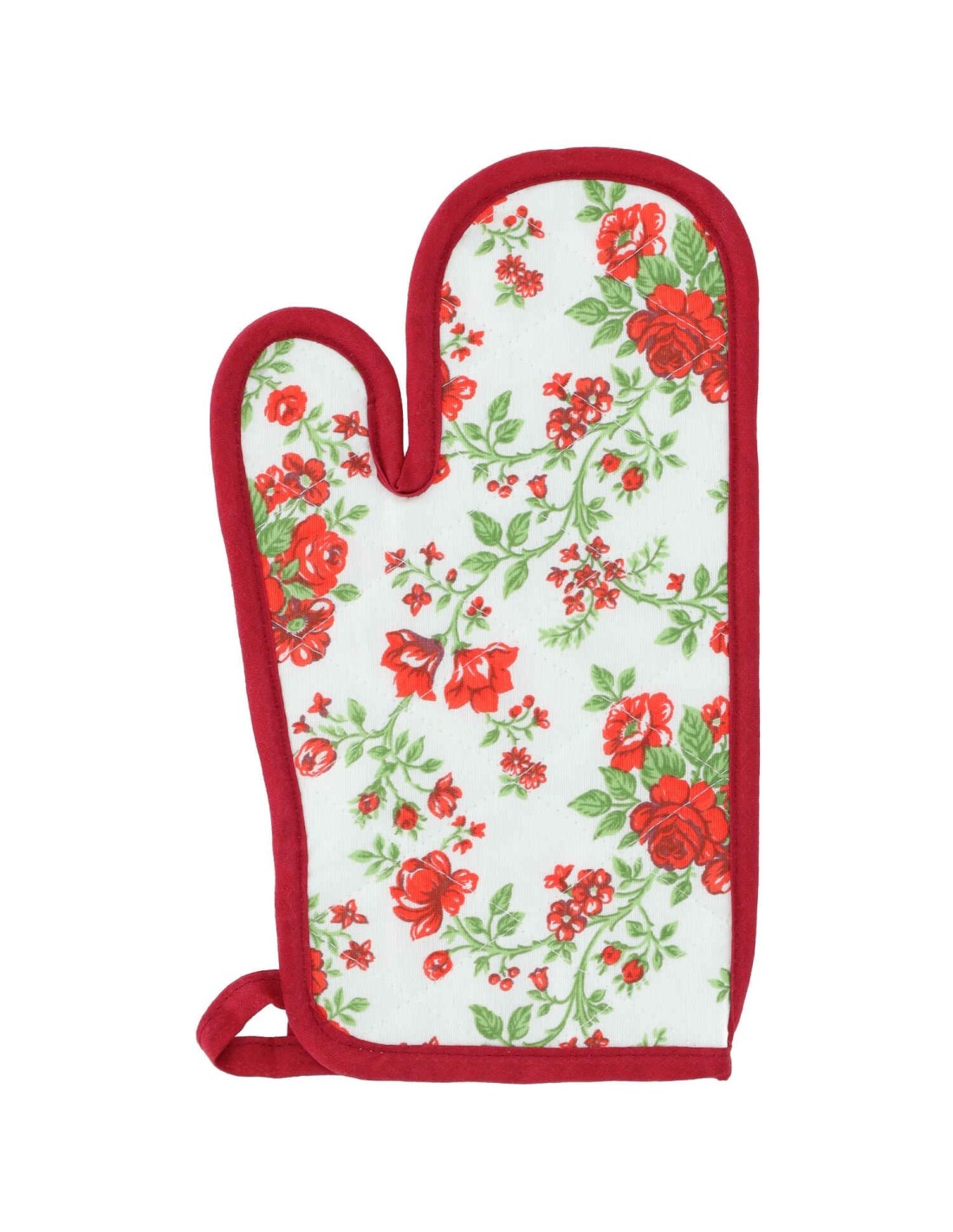 Gant de cuisine en mélange de coton, lavable en machine et coordonné avec un napperon américain et un porte-pot.