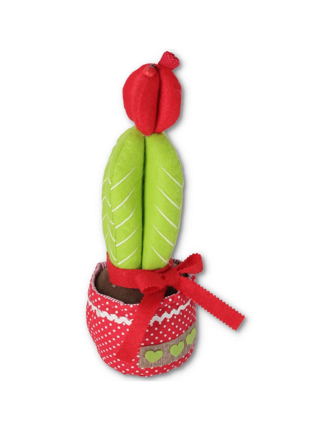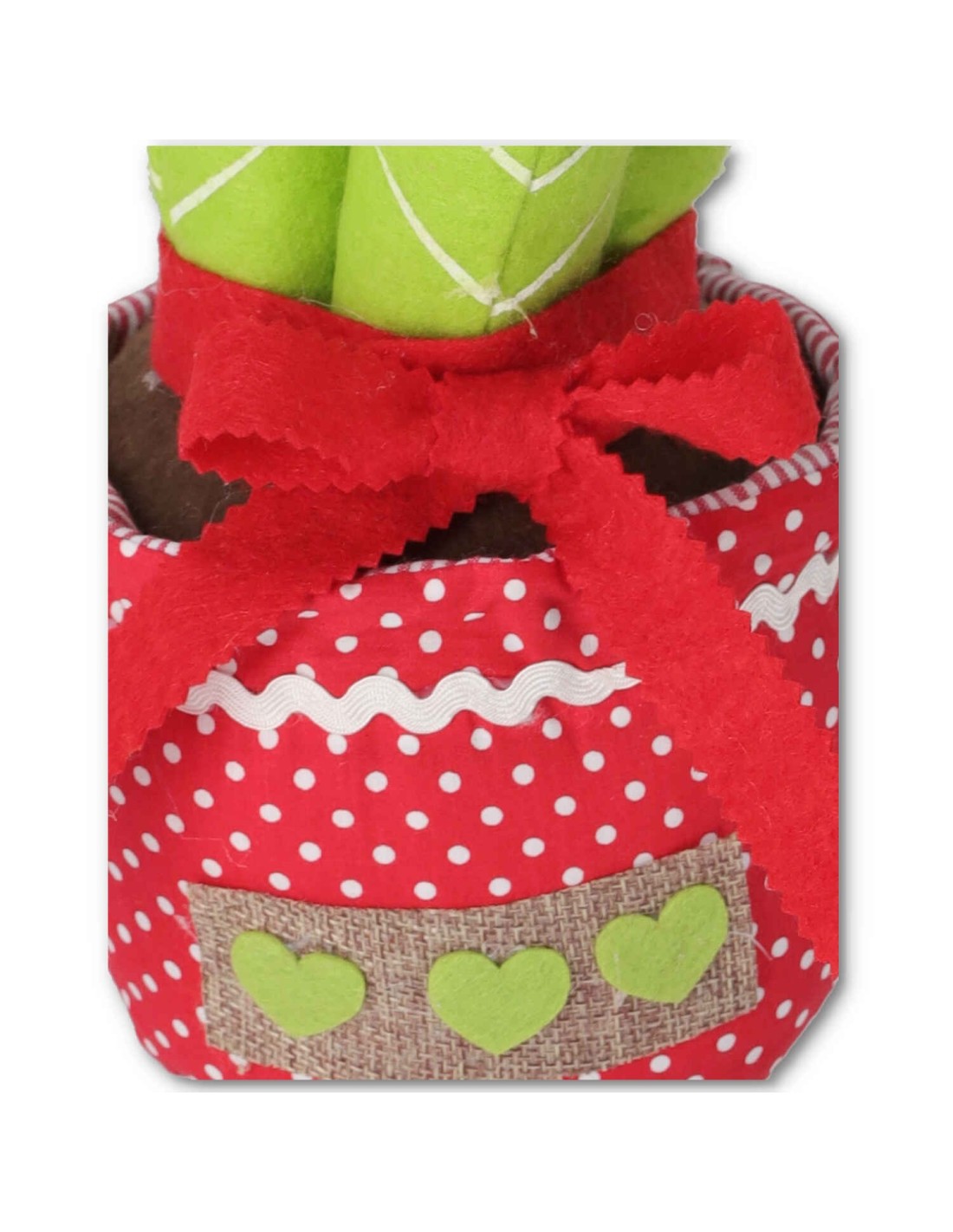 Une plante sans besoins qui restera toujours belle et fleurie même si votre pouce n’est pas si vert. Dans un vase en tissu 1 joli cactus fleuri créé avec du feutre et avec un cœur de rembourrage et de gravier.