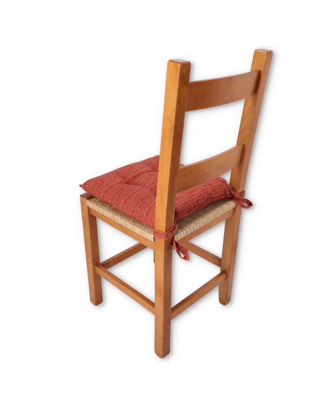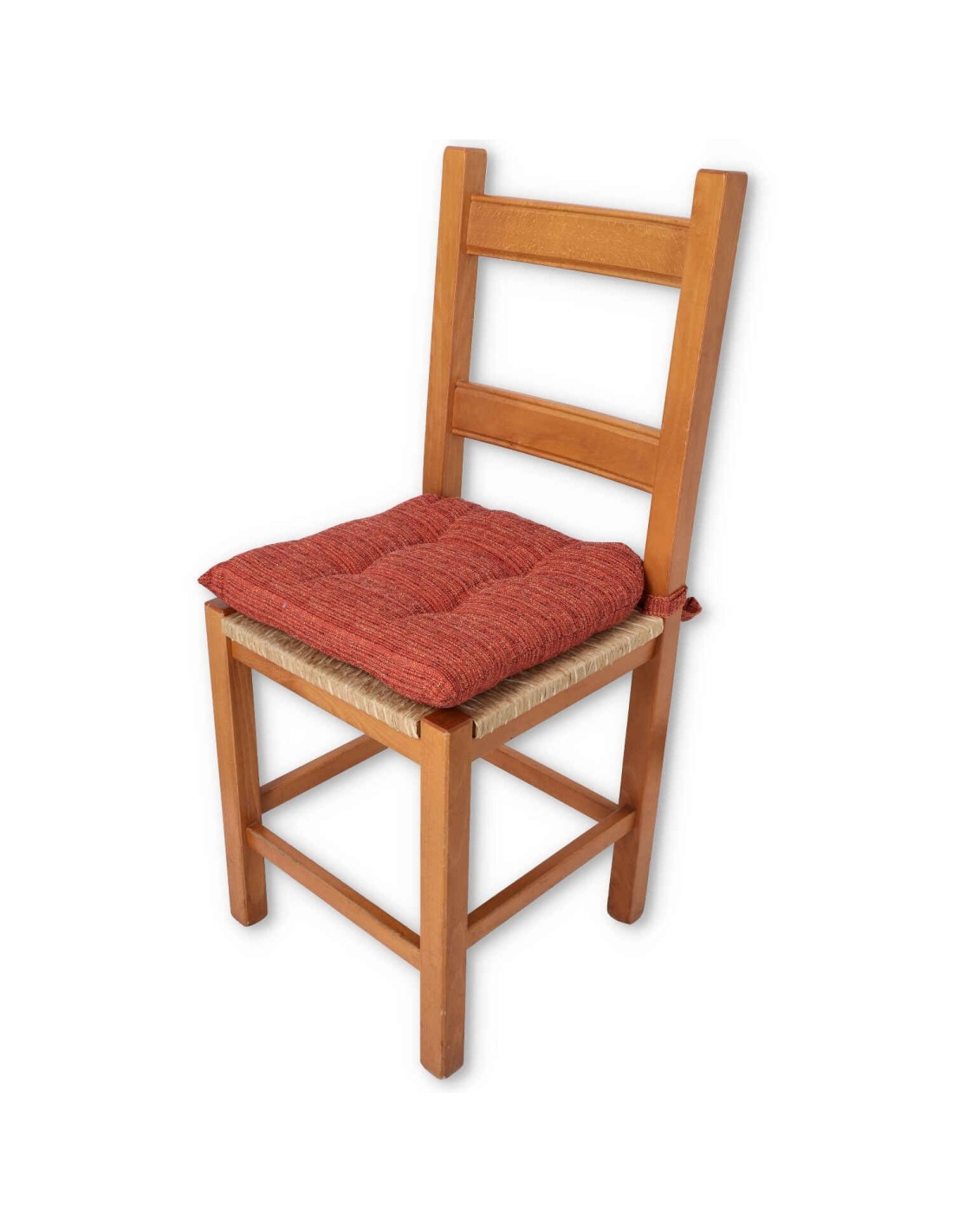 Il est également équipé de 4 lacets du même tissu pour pouvoir le nouer confortablement au dossier de votre chaise. Dimensions du coussin 38x38 cm. et 4 cm de haut. environ, vendu individuellement..