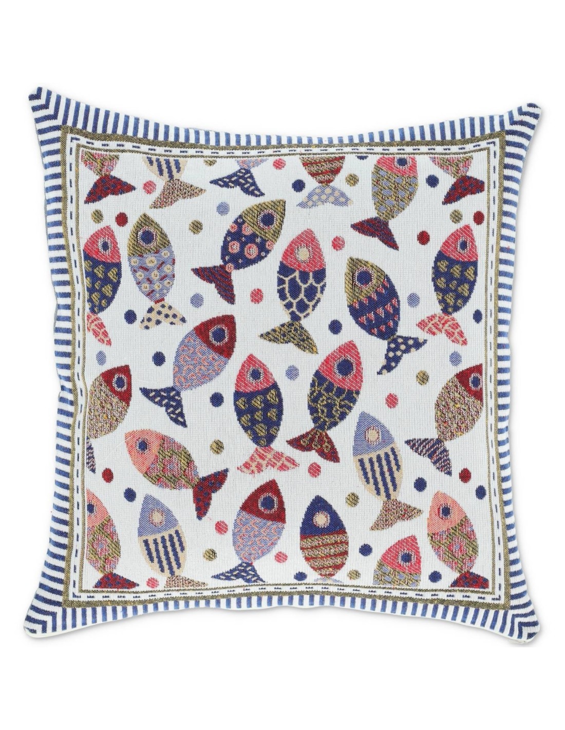 Un style marin créé par un cadre rayé qui renferme un monde de poissons pour cette doublure fabriquée en Italie avec une main cohérente..