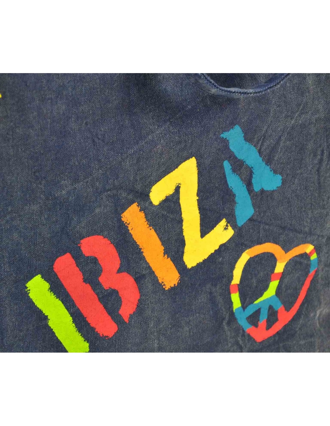 Pour couronner le tout, il est fait de pur coton avec un jeans effet de grande toile avec poches faux avec pompons colorés, bords et petite boucle par appliquée une agréable impression colorée...