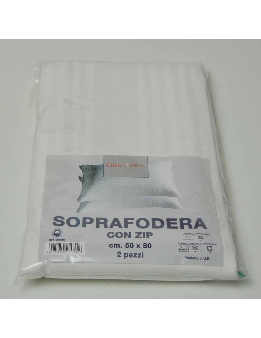 Paire de copriguanciali 50 x 80 cmTaies de coton blanc de jaquard, raies brillantes pour protéger votre oreiller et vous tirette de côté facilement à laver quand vous voulez .