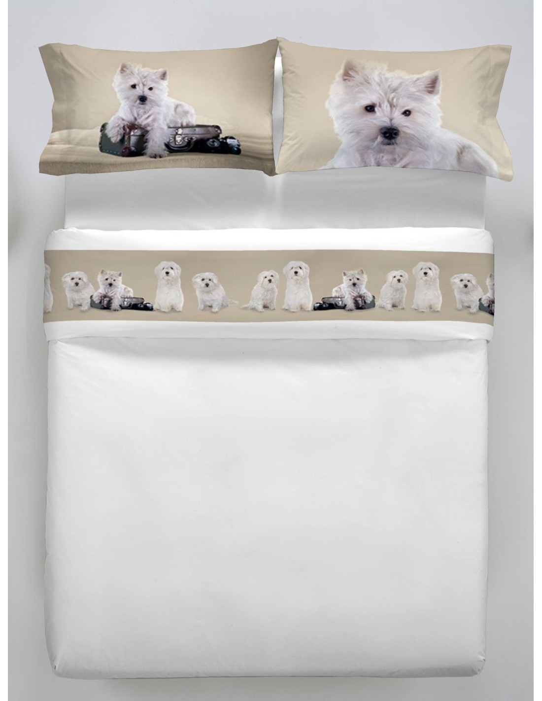 L’ensemble de draps comprend drap housse avec coins élastiques et sac avec rabat et plis sur pour verrouiller le coussin. Le nombre de changements de taies d’oreiller selon l’étendue de la mesure complète, est e 1 lit 1 place et 2 en.