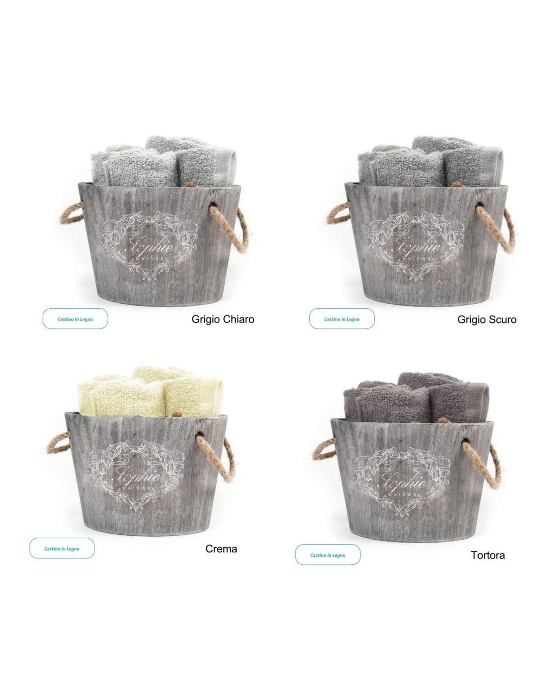 Composition : 100 % coton débarbouillette et panier en bois.