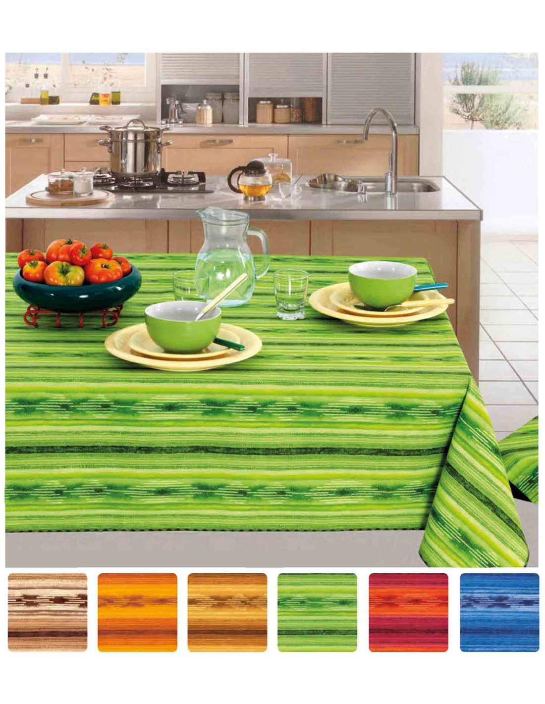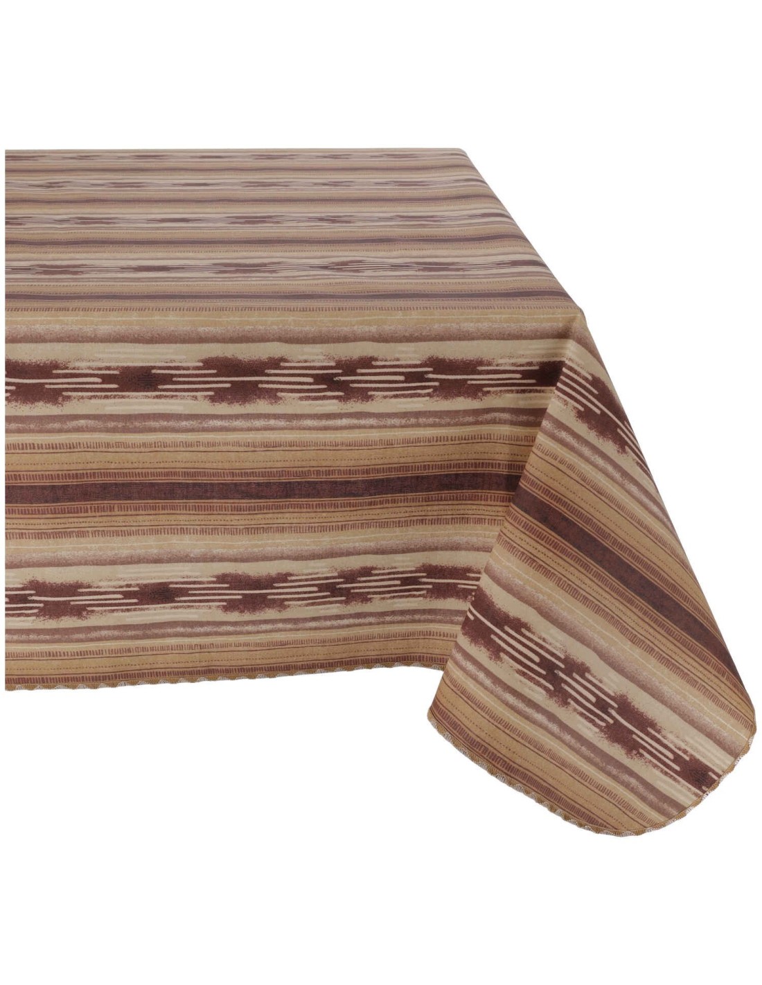 Nappe en tissu de coton plastifié avec des couleurs vives, rayé et attrait ethnique.