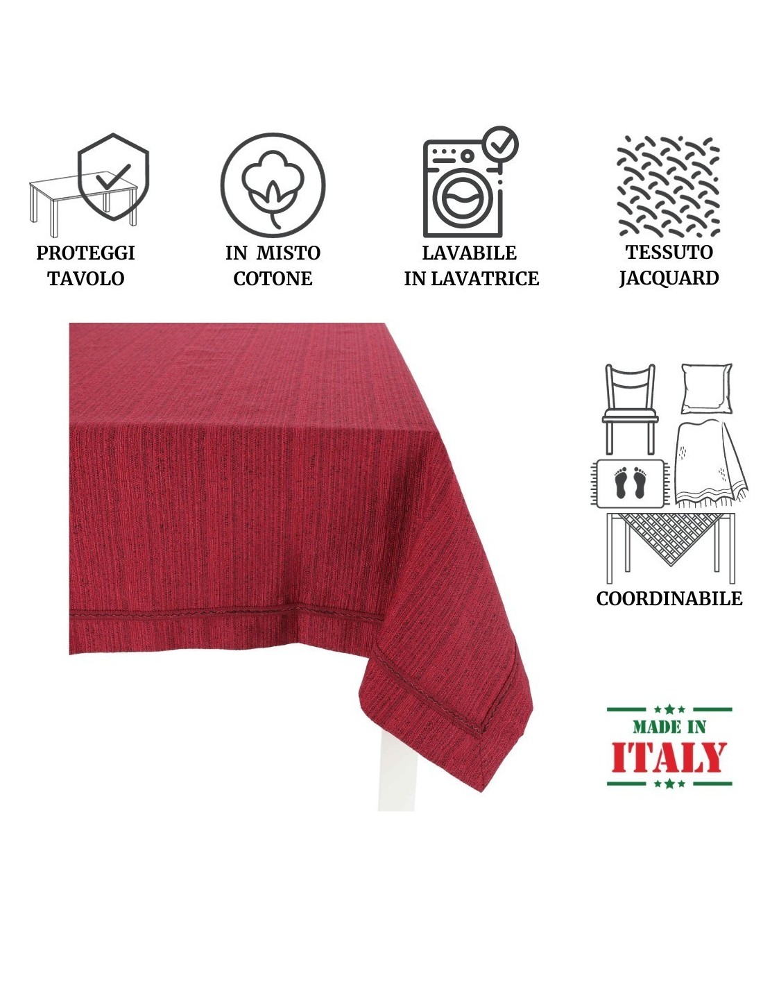 Tapis de table en jacquard de bonne couleur et poids melangiata qui vous permet d'avoir une nappe solide mais joliment décoré avec différentes nuances de couleur..