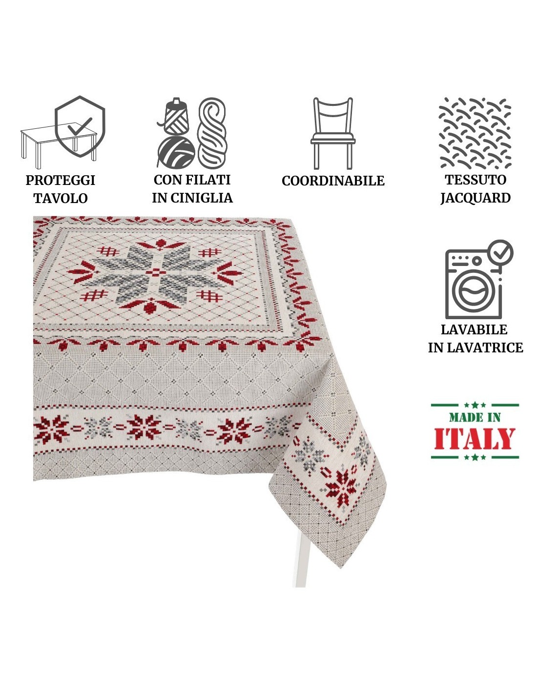 TISSU RÉSISTANT: Le tissu utilisé pour créer cette nappe est le tissu jacquard, un produit avec une texture grossière et cohérente et un bon poids, pas la tocaglia classique en coton léger.