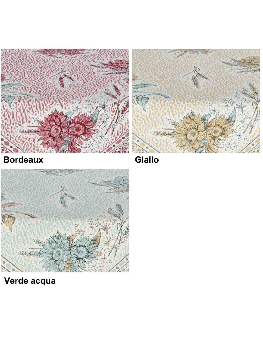Tissu mélangé de coton avec une main épaisse et consistante, gracieusement orné d’un motif floral créé avec un traitement jacquard qui garantira la résistance au lavage x design et couleurs. Ourlé sur 4 côtés avec ourlet pantalon..