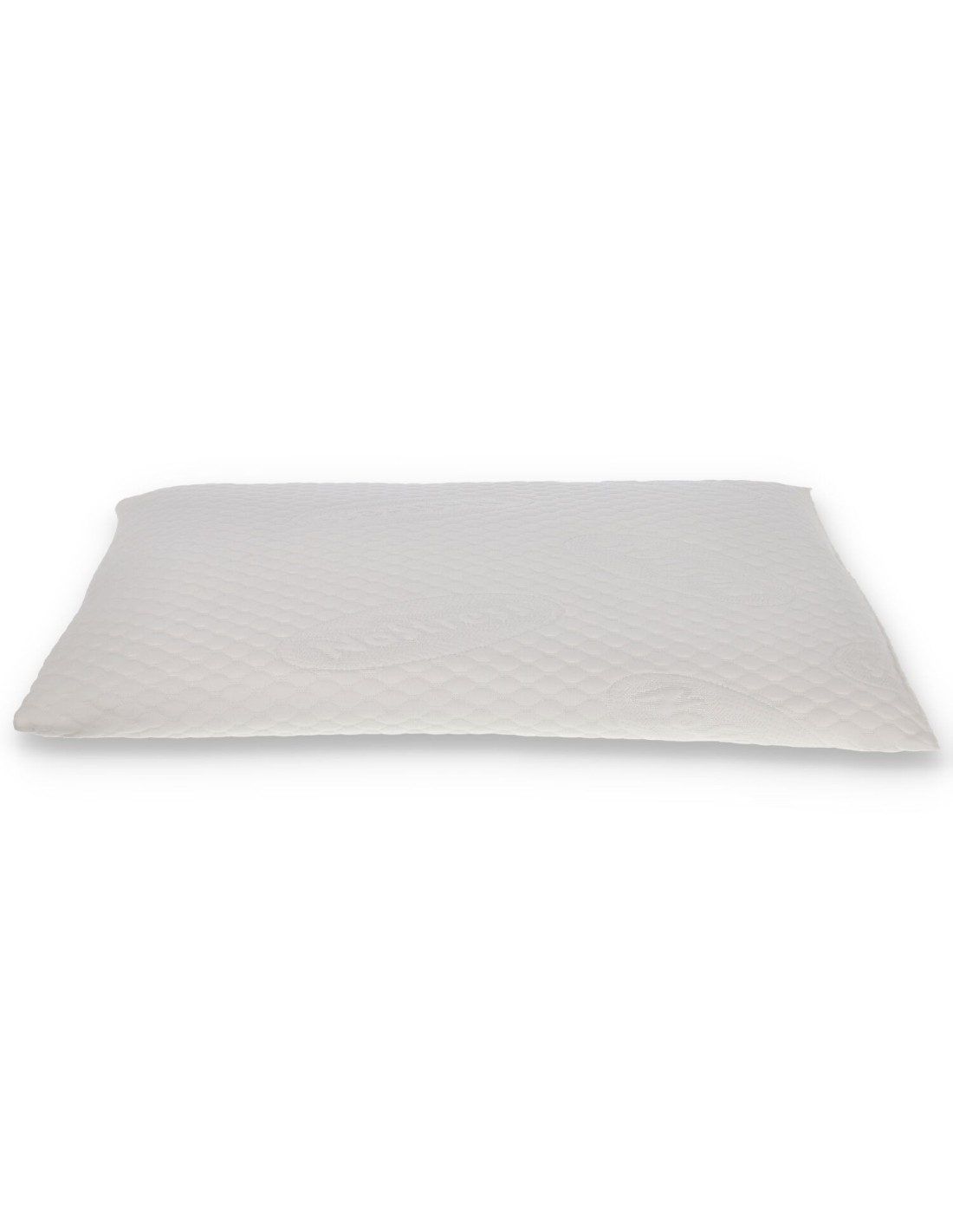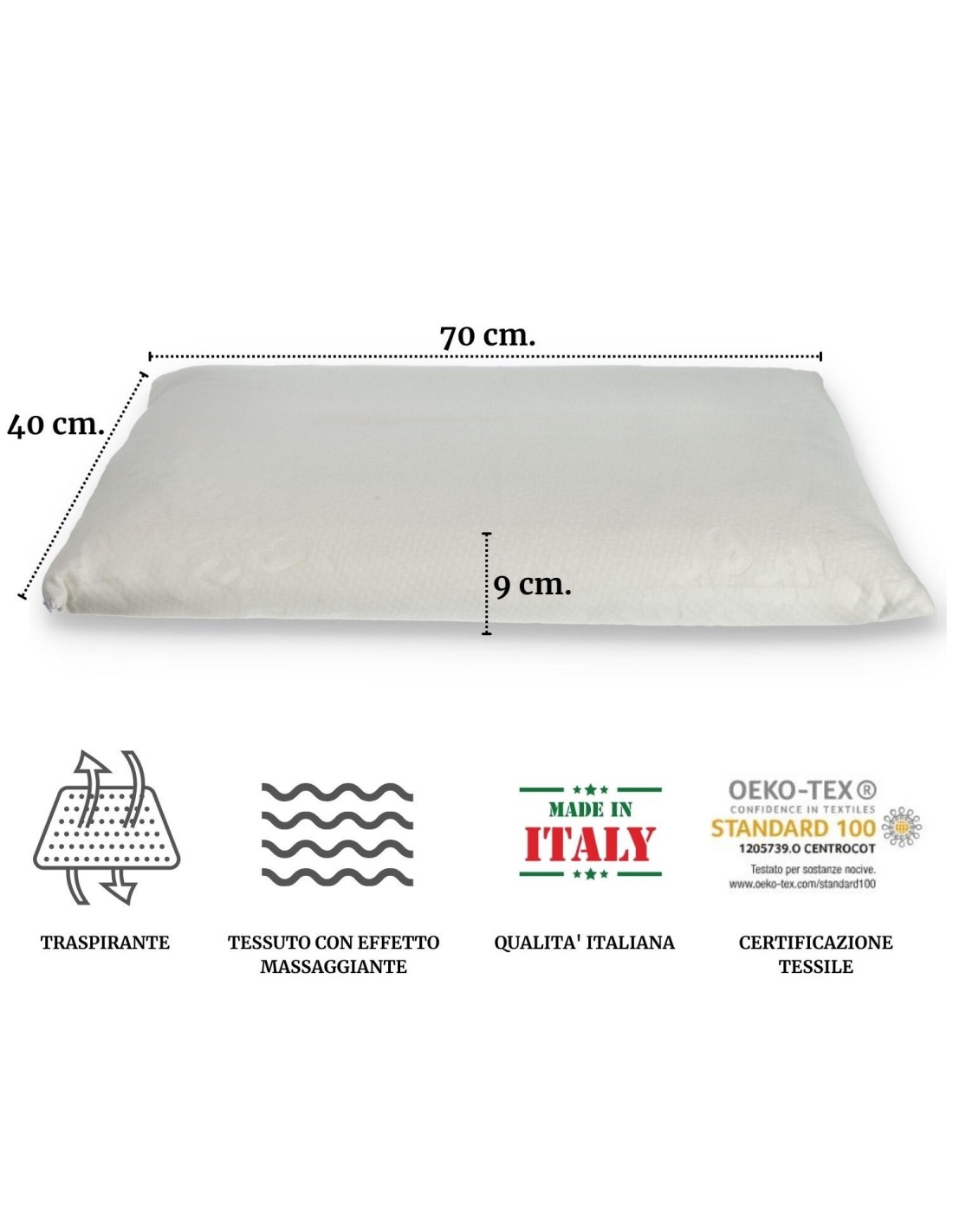 Oreiller innovant entièrement fabriqué en Italie avec taie d’oreiller en tissu biélastique avec effet massant et rembourrage avec bord en fibre cardée douce..