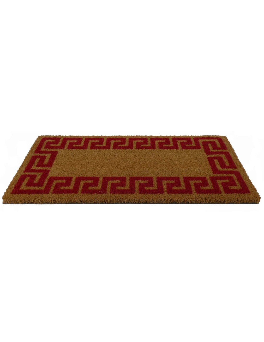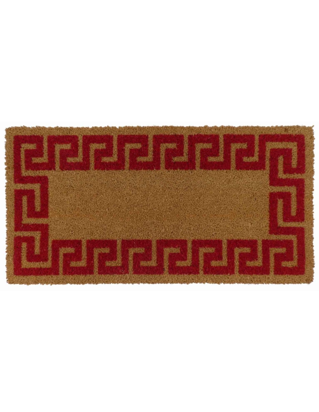 Paillasson en noix de coco naturelle tuftée rectangulaire en plusieurs dimensions et orné d’une grecque classique imprimée.
