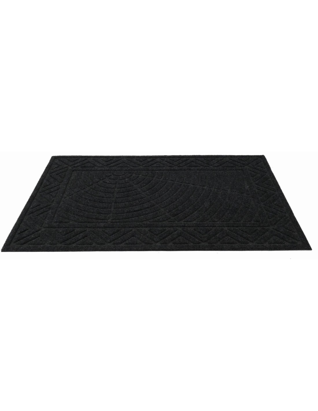 Paillasson d’entrée en caoutchouc et polyester agrémenté d’un design en relief créé par la différence d’épaisseur du tissu sous-entendu.