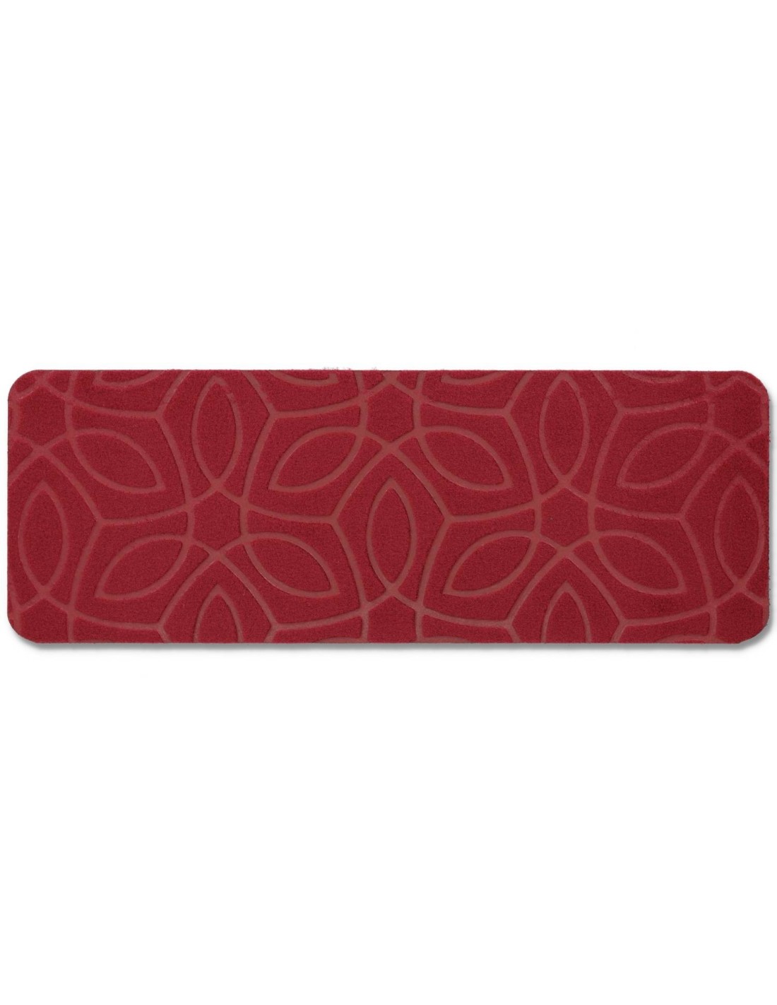 CARACTÉRISTIQUES : Une surface en polypropylène tufté couplée à une base en vinyle antidérapante. Le design est estampé à chaud, aucune couleur n’est utilisée qui s’estompera avec le temps, mais seulement la chaleur qui crée différents niveaux d’épaisseur dans le matériau, donnant lieu à une décoration en bas-relief qui ne subira pas de changements avec le temps..