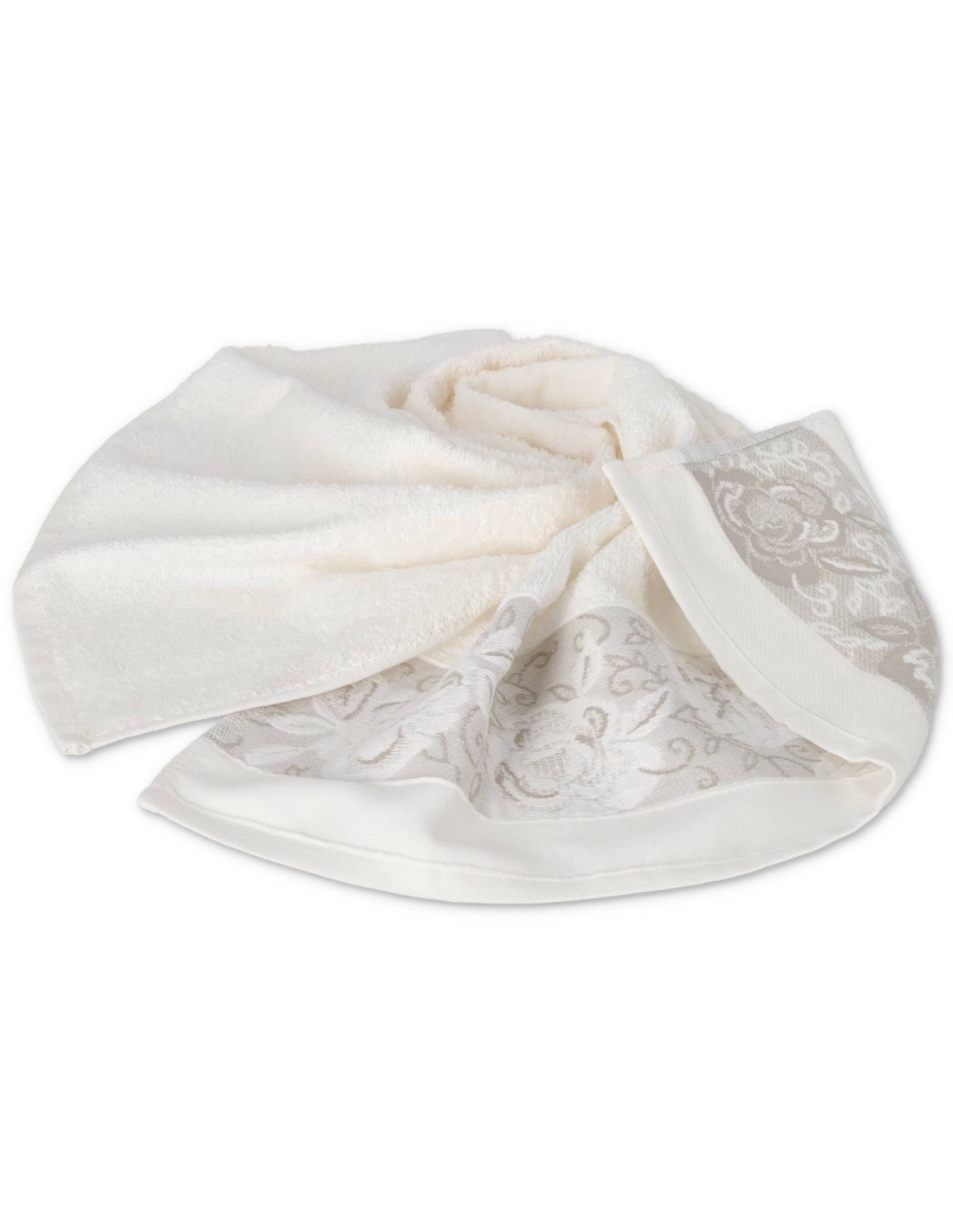 Une éponge italienne aux nuances naturelles agrémentée d'un bond du motif floral créé dans le tissage avec le traitement du jacquard..