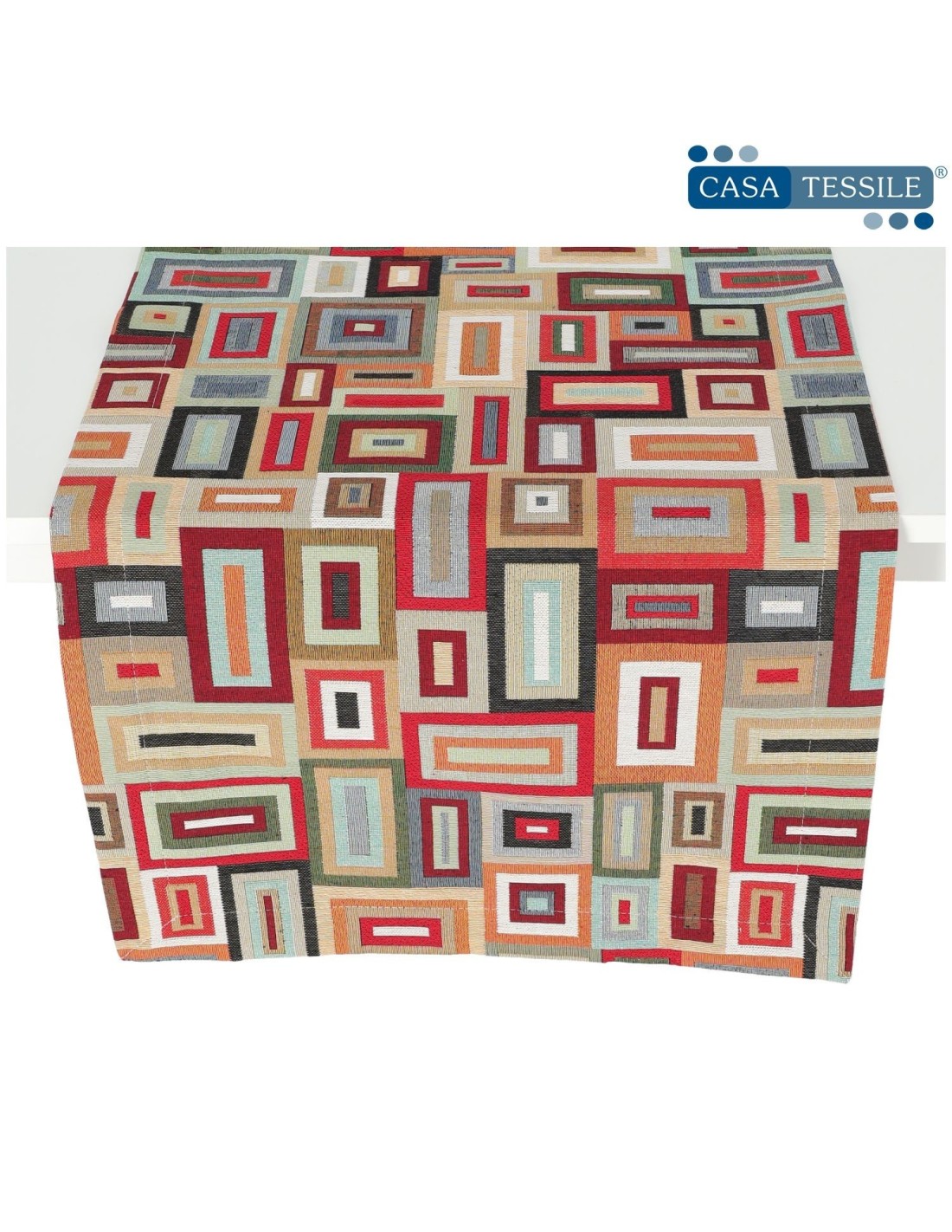 FENIX est un magnifique chemin de table et centre de table en tissu jacquard haute définition avec un motif géométrique dans un mélange de couleurs pour égayer votre cuisine ou votre salon..