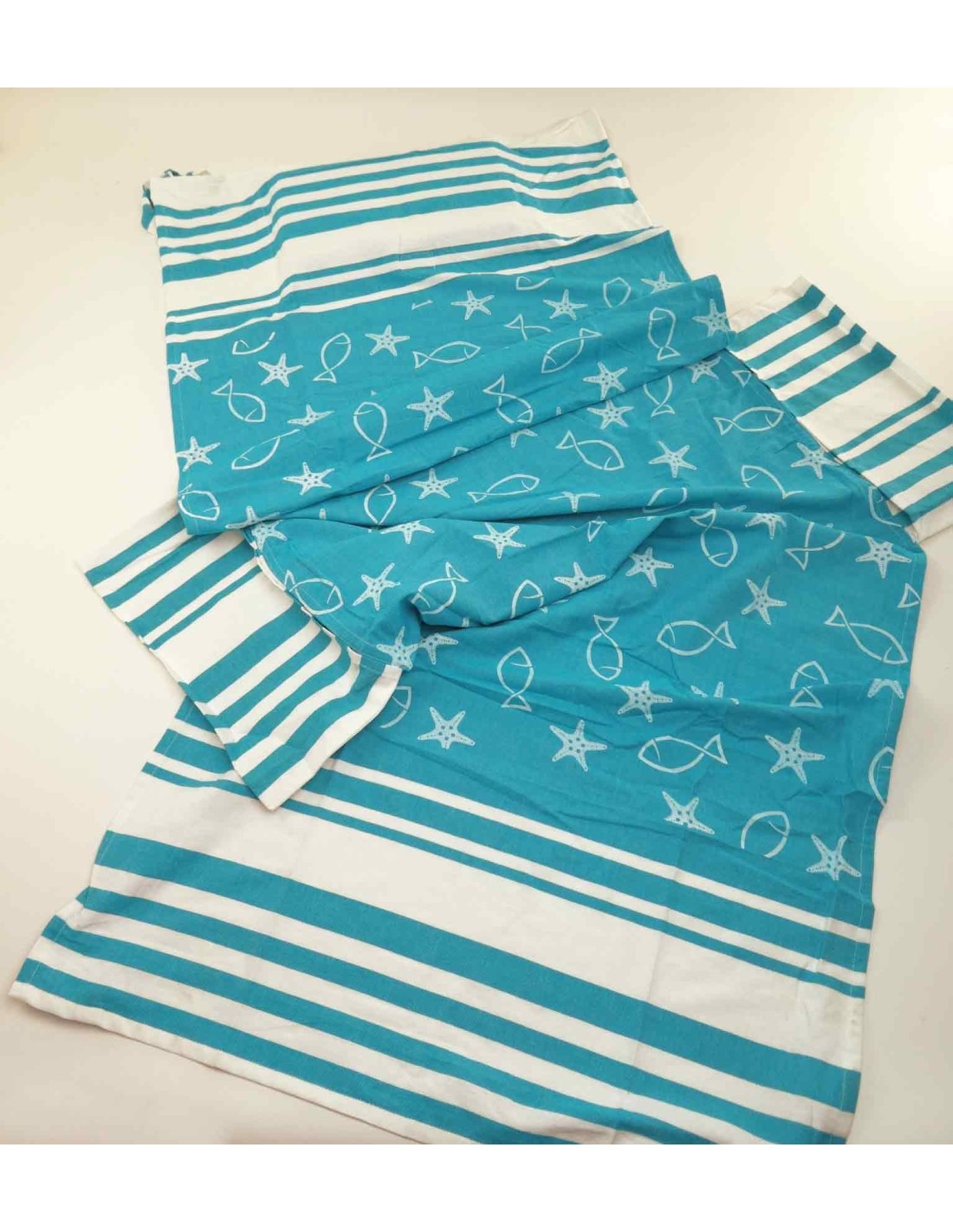 Serviette de mer poisson chaise longue en pur coton..