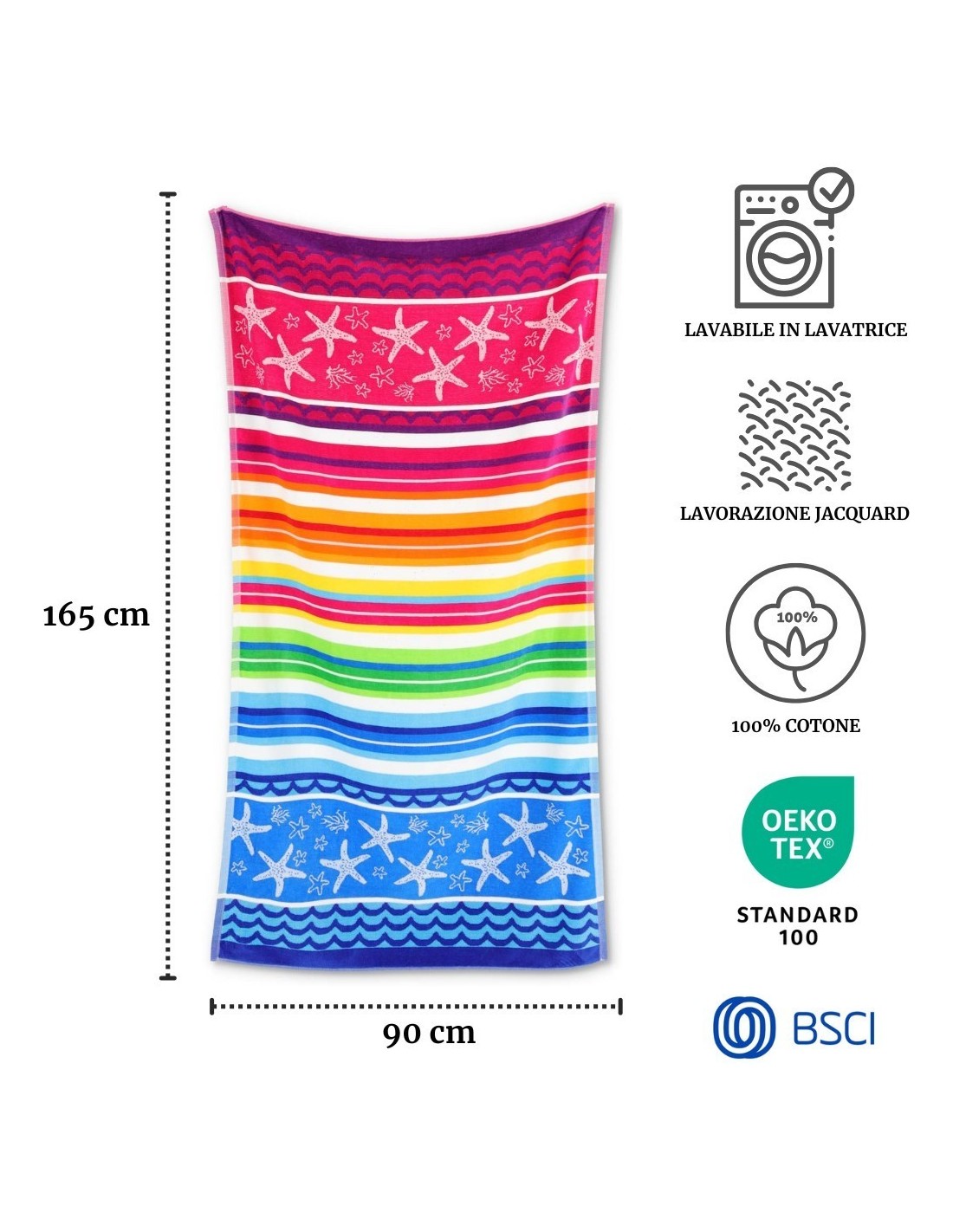 Serviette de plage en coton jacquard 90X165 cm. ÉTOILE DE MER