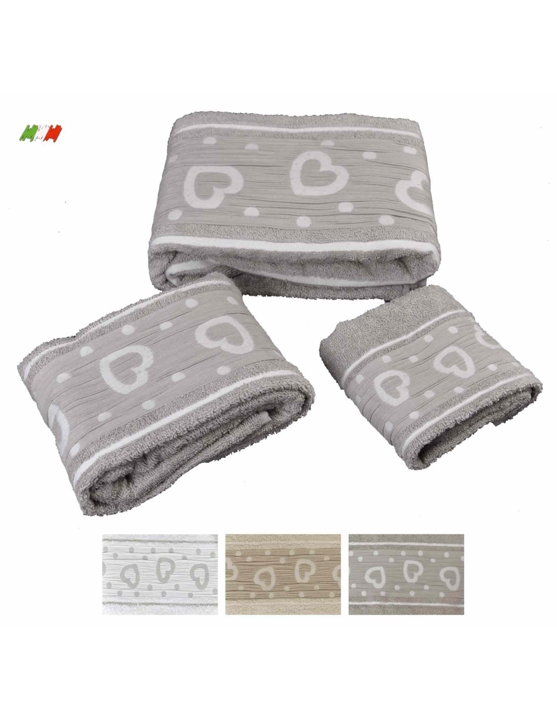 Amore cuori Ensemble 3 PCs. Serviettes éponge