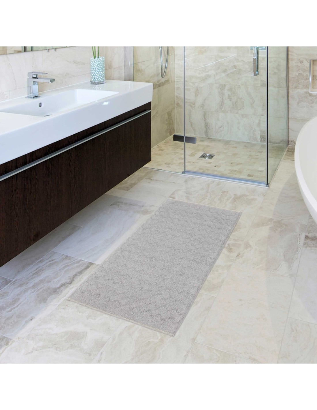 Un tapis de couloir idéal pour votre salle de bain avec un jeu gracieux d’épaisseurs qui créent un motif en zigzag ton sur ton.