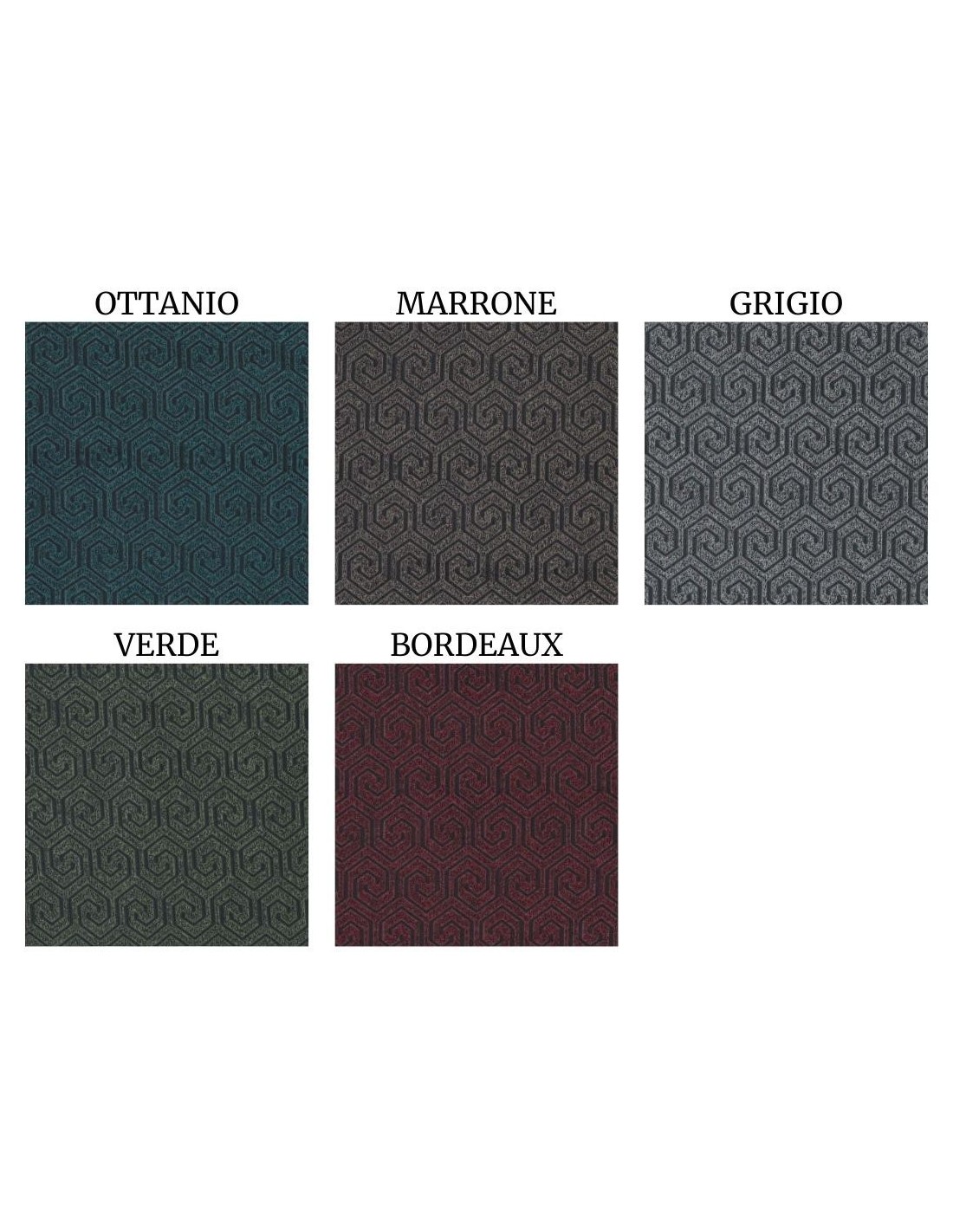 Une ruelle rendue gracieuse par une série de Grecs colorés en relief créant un effet velouté au toucher, un design qui restera inchangé au fil du temps sans risque de décoloration car il n’est pas imprimé mais créé directement en tissage..