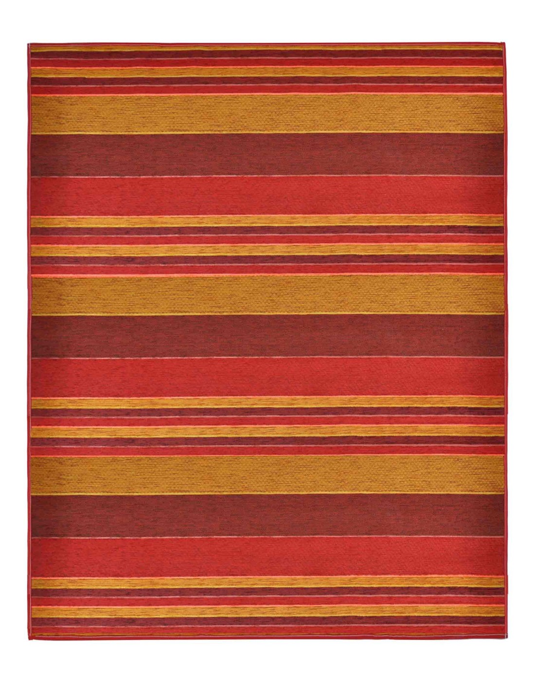 En tissu Jacquard avec des fils de chenille avec un motif rayé vif et coloré avec un fond antidérapant.