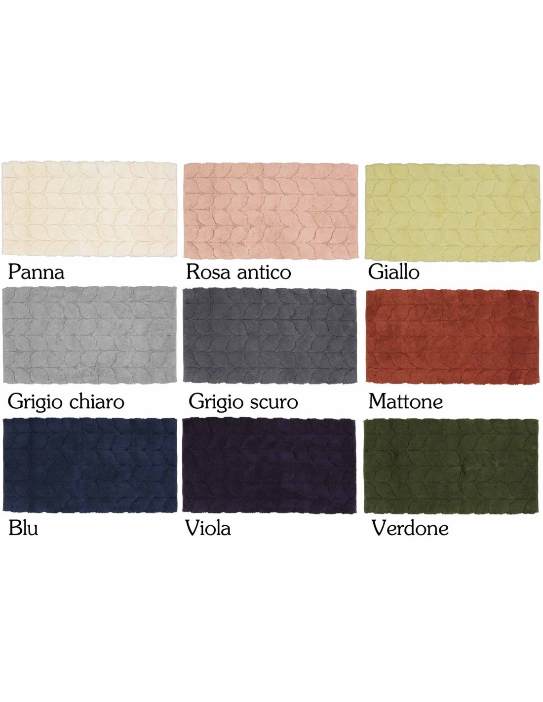 Prodotto con tessitura Tufting e completato da un trattamento di finissaggio che elimina manualmente ogni imperfezione, munito sul retro di un antiscivolo permanente che garantisce la massima sicurezza per chi vi cammina sopra..