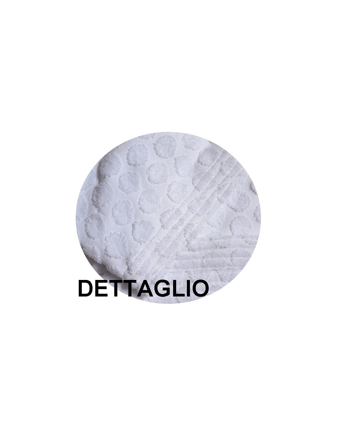 Il disegno a bolle è creato grazie alla lavorazione jacquard, un gioco di altorilievi tono su tono che rende l'accappatoio ancora più assorbente mantenendo la sua sobrietà..