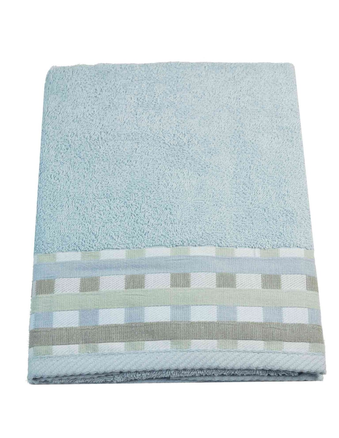 Asciugamani in puro cotone dal buon peso create con la classica lavorazione spugna a ricciolini e guarnite da una banda di tessuto jacquard a quadri..