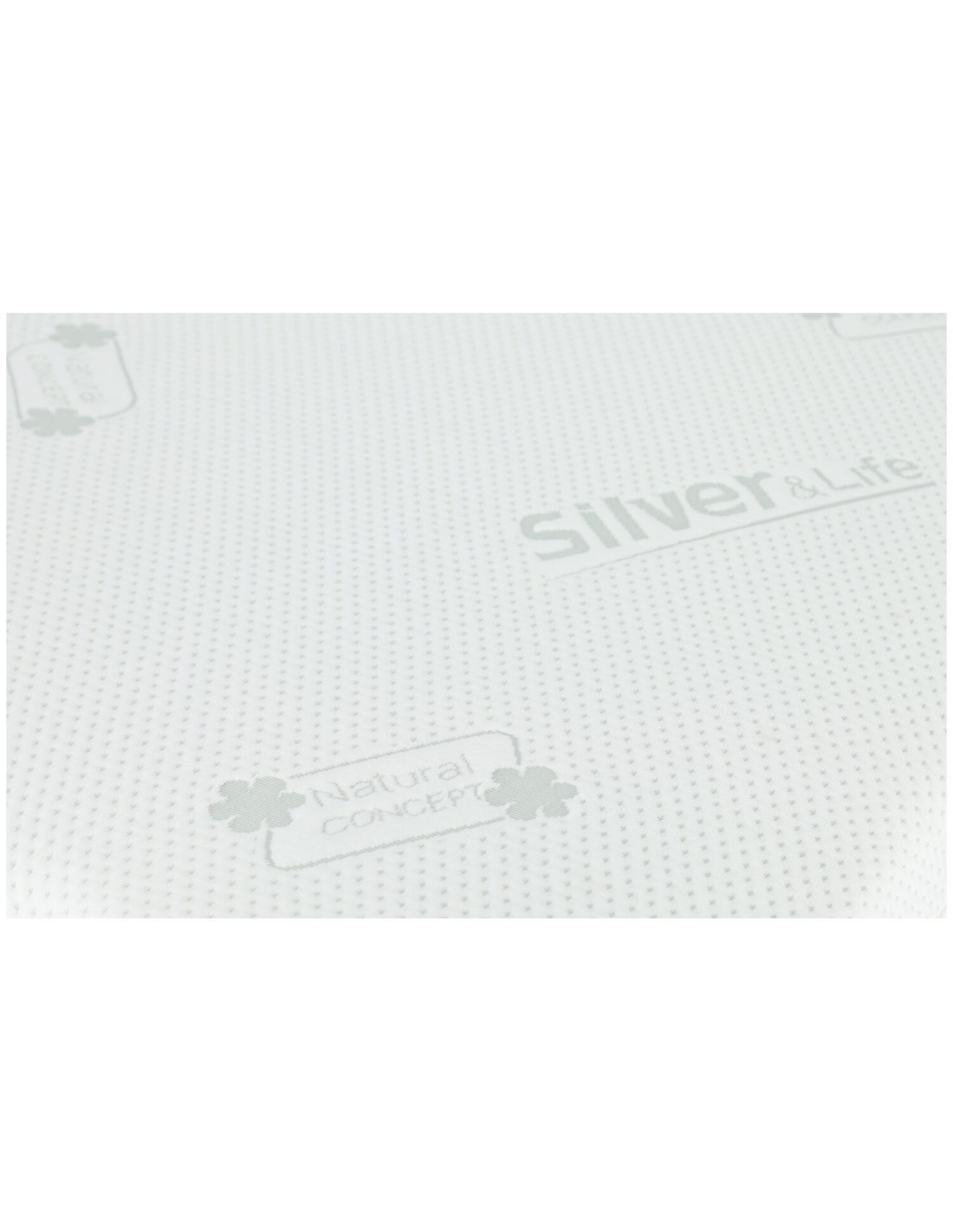 RIVESTIMENTO: Tessuto in poliestere con trattamento SILVER dal potere antibatterico, completamente sfoderabile grazie alla cerniera di cui è munito e fornito di 4 elastici per essere fissato comodamente e in modo semplice e veloce al materasso..
