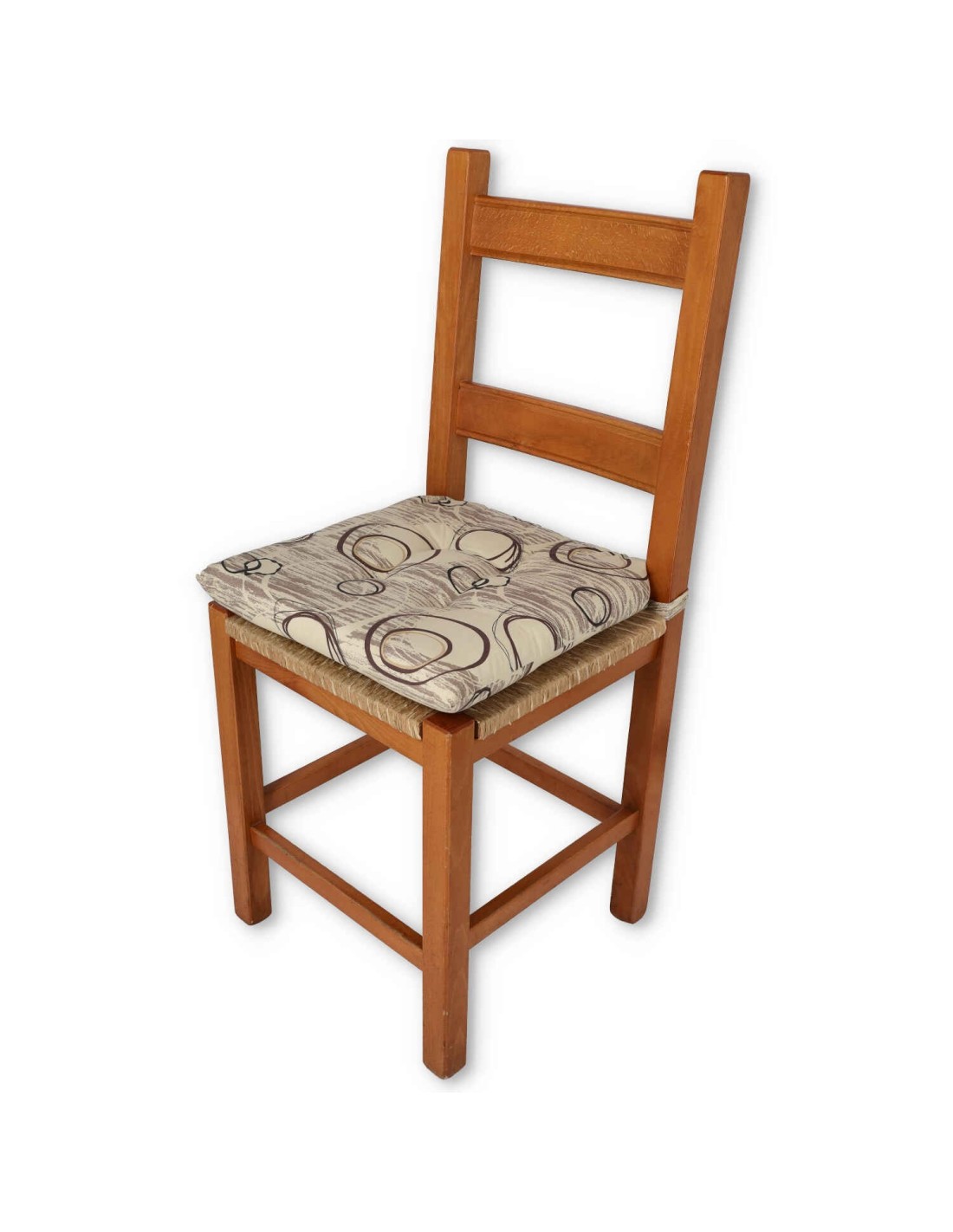 MORBIDONE: Cuscino in versione morbidone cioè completo di imbottitura alta circa 4 cm. e fornito di doppio laccetto, dello stesso tessuto, per poterlo comodamente legare alla spalliera delle tue sedie..