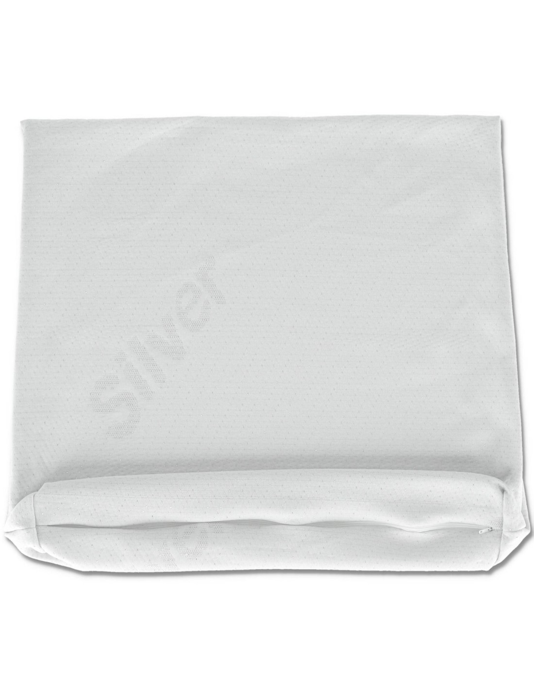Realizzato in tessuto jacquard bielastico nobilato dal trattamento antibatterico agli ioni d'argento. Munito di pratica cerniera per essere sfoderato e rinfrescato con semplicità all'occorrenza..
