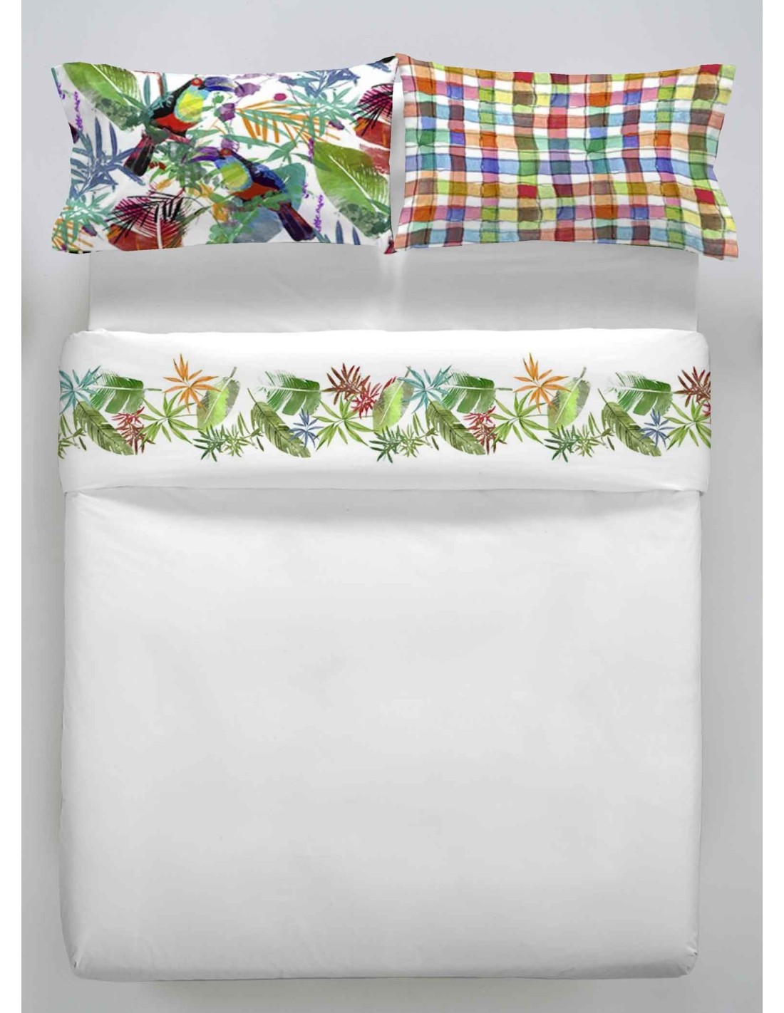 Il tuo letto una giungla, tra foglie e rami 2 grossi uccelli dal piumaggio colorato fanno capolino..