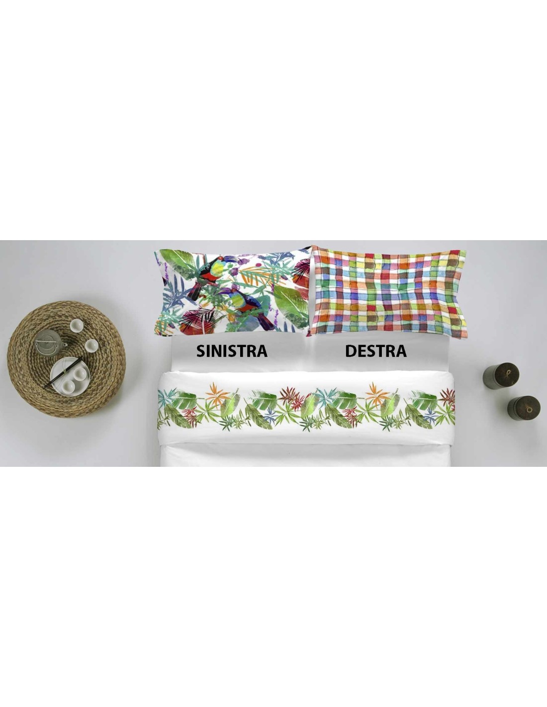 Le 2 federe sono stampate con 2 fantasie diverse, per questo motivo nel completo singolo e piazza e mezza, essendoci 1 sola federa, hai la possibilità di scegliere tra destra e sinistra come da foto in base al disegno che vuoi ricevere. Il matrimoniale è disponibile solo in combinazione unica...