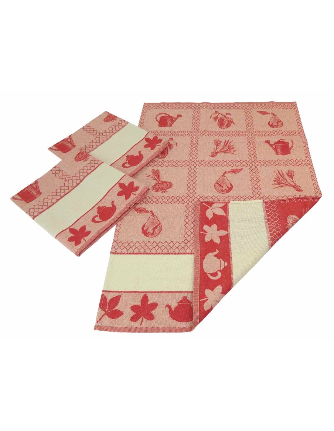 Un pacco convenienza che contiene 3 strofinacci 55x95 cm. circa decorati con frutta e verdura creati a telaio con la lavorazione jacquard e soprattutto con una fascia alta circa 10 cm. di tela aida dove potrai ricamare ciò che vuoi..