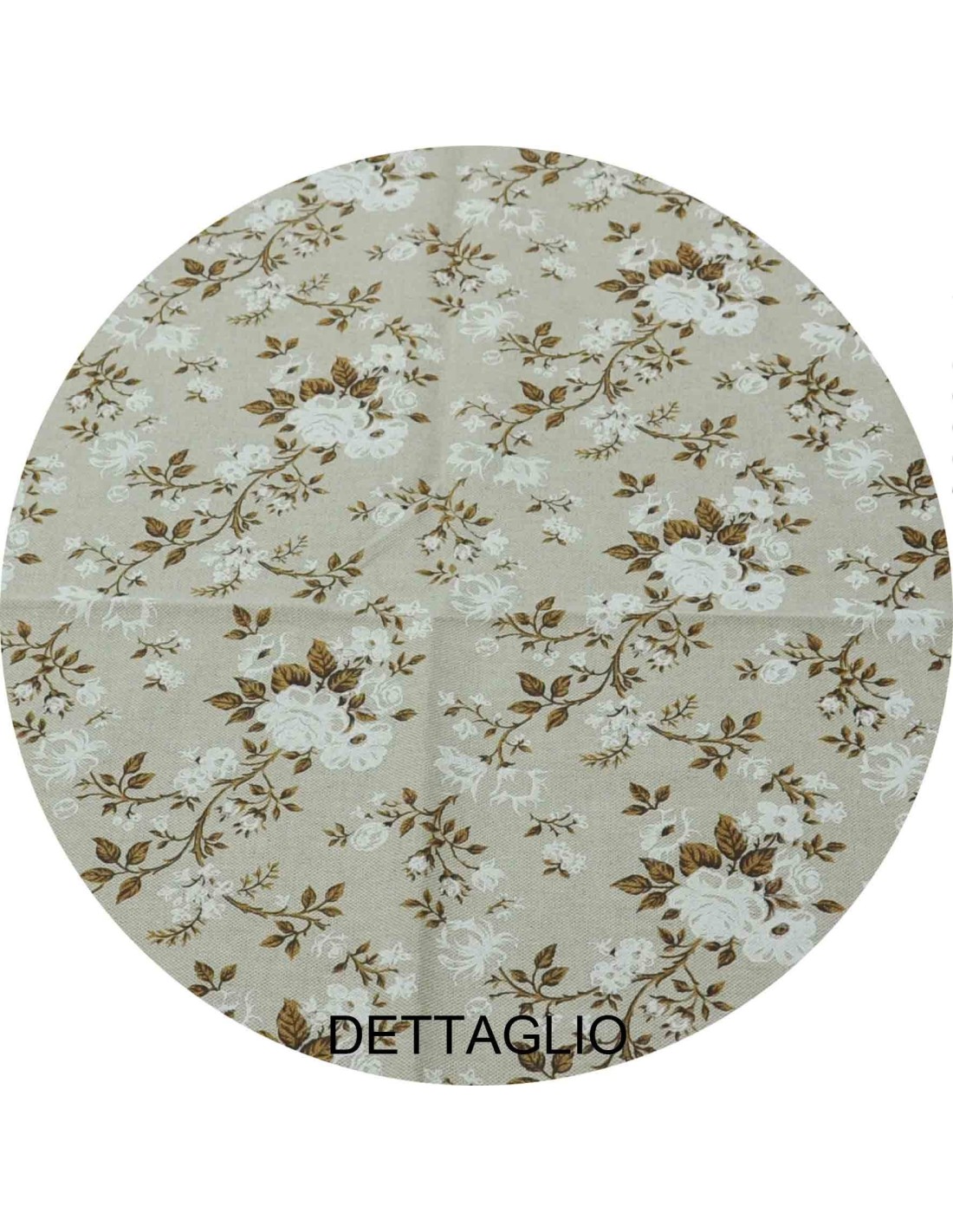 Tessuto, dalla trama grossa e resistente, è stampato su base dal colore naturale con una fantasia floreale. Rametti di fiori con foglie e boccioli per un'eterna primavera nella tua cucina.