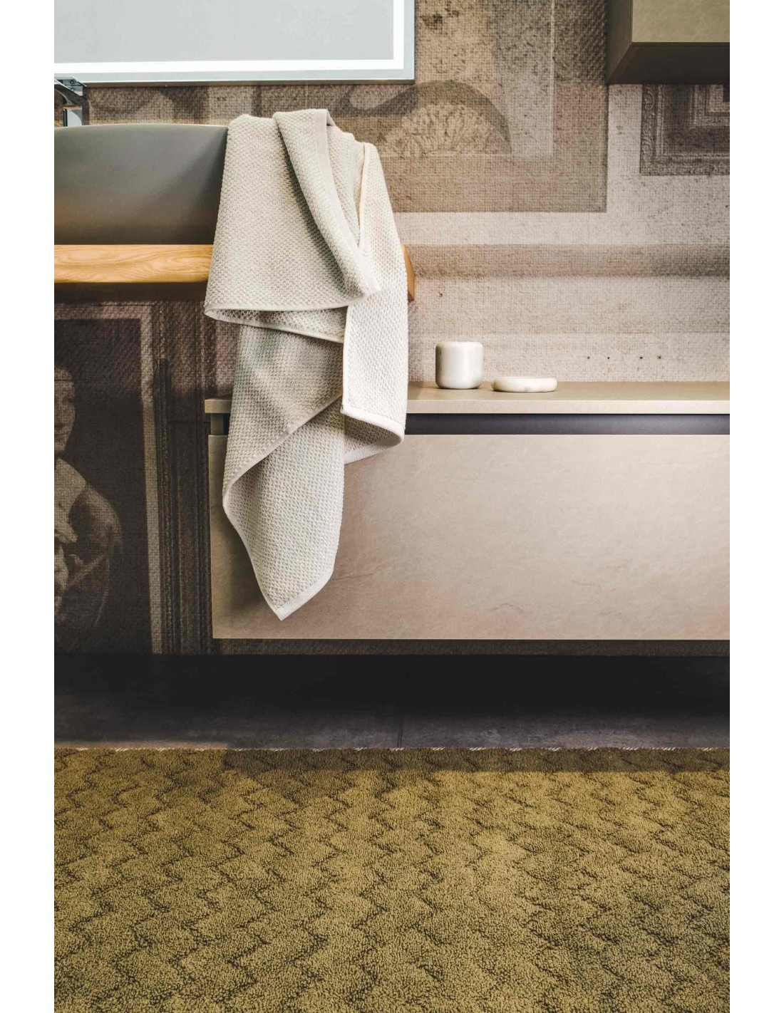 Un tappeto corsia ideale per il tuo bagno con un grazioso gioco di spessori che creano un motivo a zig zag tono su tono.
