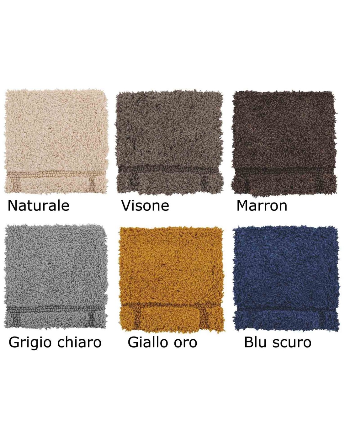 Disponibile in molti colori e misure tra cui scegliere tra cui il set 3 pezzi che comprende un tappeto 55x90 cm. e 1 coppia di giri 55x45 cm..