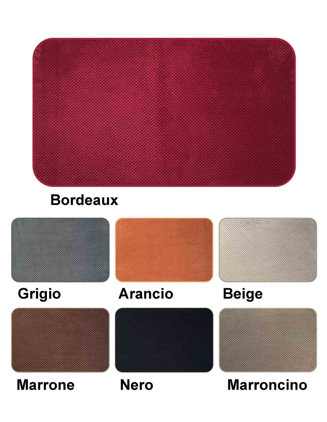 Un tappeto largo 50 cm. pratico e comodo in tinta unita dalla graziosa lavorazione a quadrettini alternati che creano un effetto mosaico..