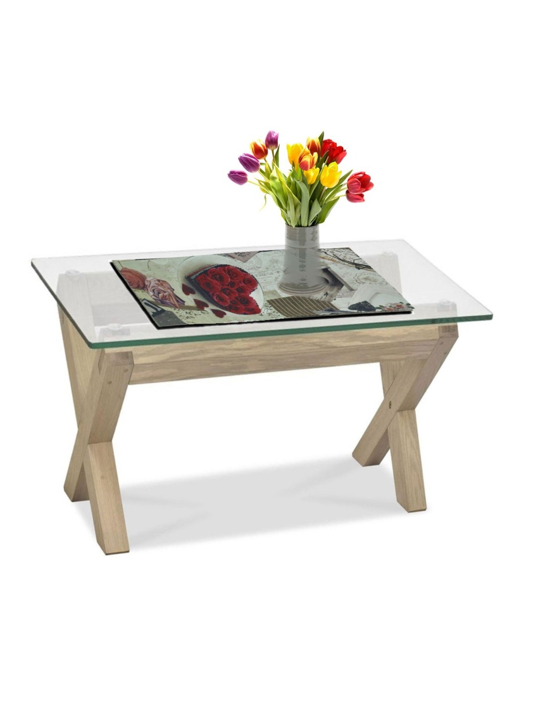 Una base patchwork su cui sono adagiati cuori, rose e cartoline dai contorni ben definiti grazie all'alta qualità della stampa digitale.