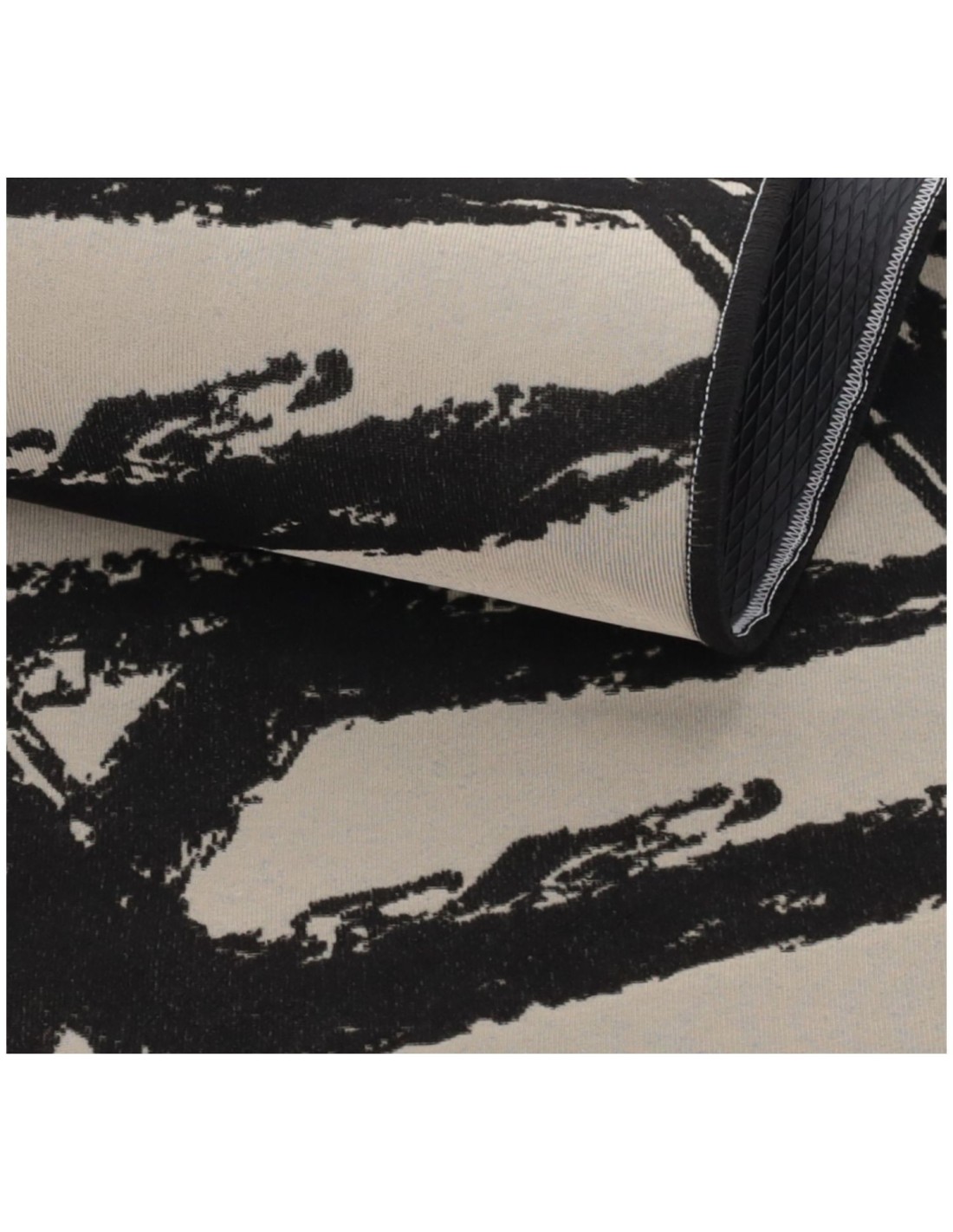CARATTERISTICHE: Una passatoia moderna dalla fantasia semplice ma accattivante. La base del tappeto è liscia e dal colore neutro su cui nasce in rilievo e dalla mano vellutata il movimento di righe nere, entrambi creati in tessitura con la lavorazione del jersey. Accoppiato ad un sottofondo antiscivolo gommato per renderlo fermo e stabile a terra e rifinito a tagliacuci su tutto il perimetro con angoli arrotondati..