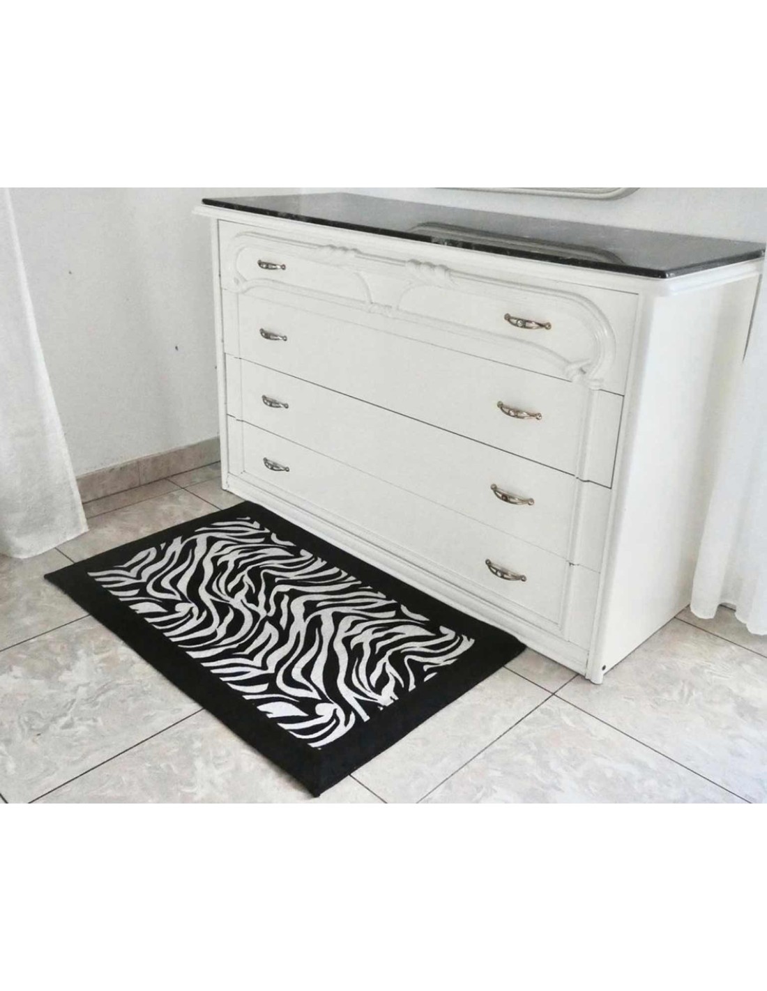 Filato di ciniglia bianco e nero in un gioco di fantasia zebrata , corniciata da una fascia nera e completato con un sottofondo antiscivolo..