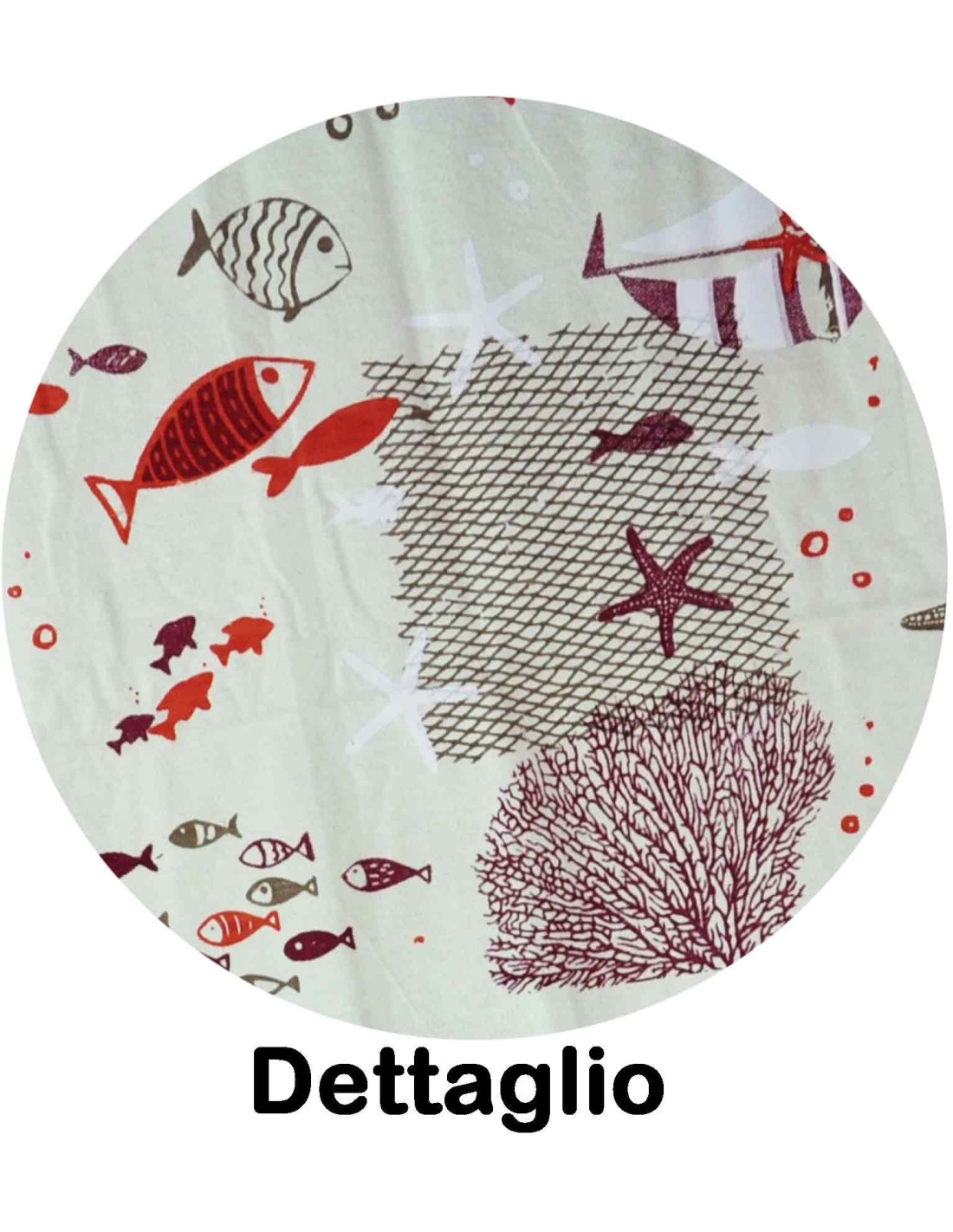 La parte centrale del telo inoltre è abbellita da una stampa, presente solo sul dritto, con una fantasia marina con pesci, coralli, stelle marine e tanto altro.