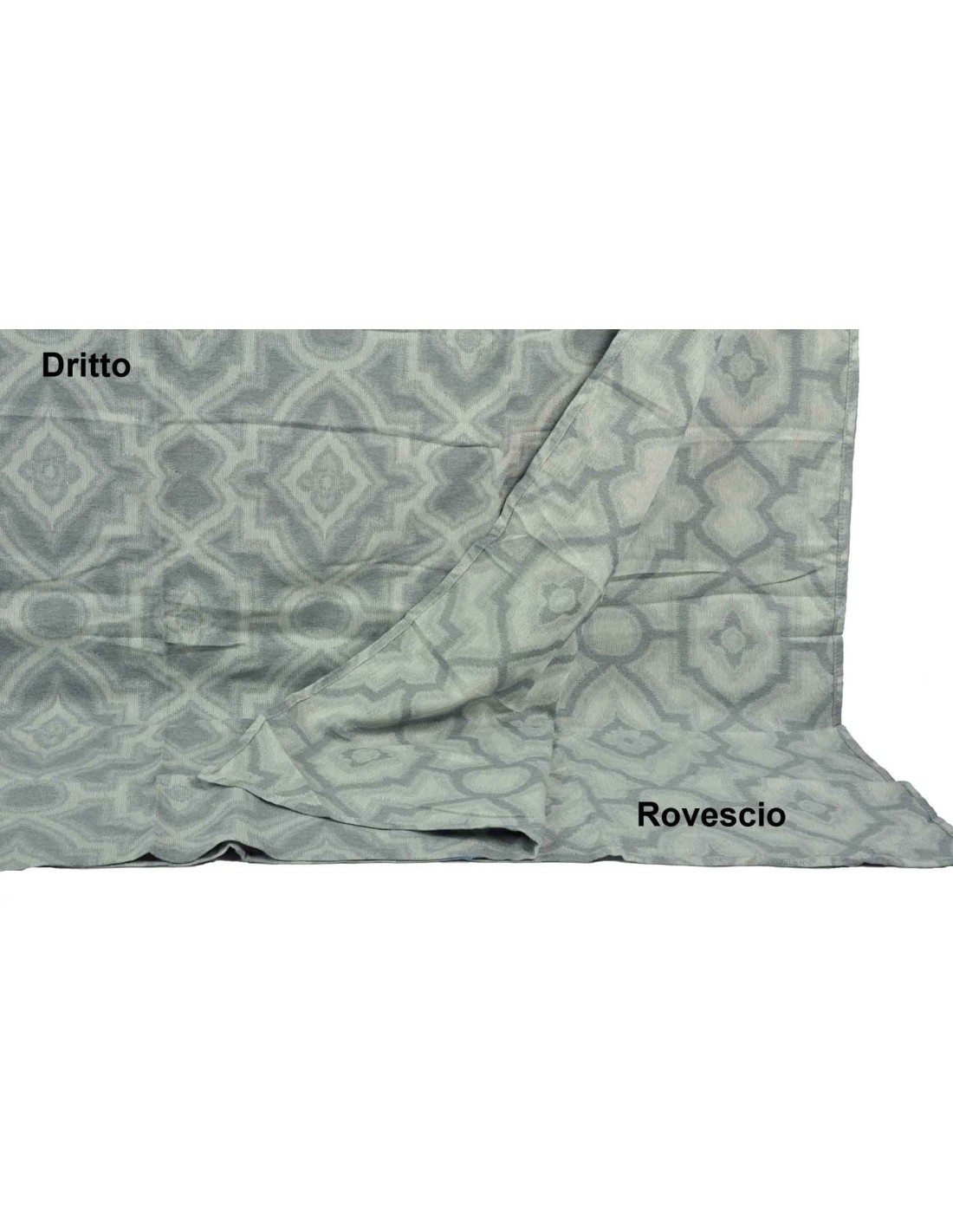 Un telo dal buon peso creato con la lavorazione jacquard che crea il disegno direttamente in tessitura rendendolo leggibile e bello da ambo i lati in un gioco di chiaro scuro, tono su tono. Usalo dove e come vuoi, copridivano, tendoni coprenti, copriletto..
