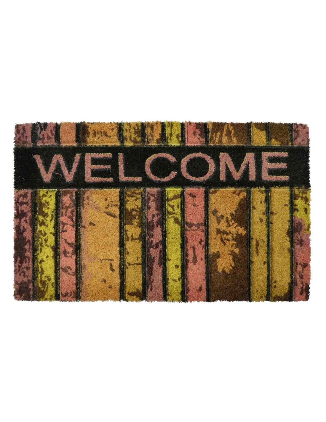 Tappeti da esterno in cocco naturale accoppiato ad un fondo vinilico. La superficie in cocco tuftato è graziosamente abbellito da una stampa con colori acrilici con un'ottima resistenza del colore e brillantezza..